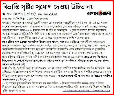বিচারের সচ্ছতার দাবী আমাদের সকলেরই। একটা জগাখিছুড়ি বিচার করে নতুন করে ইতিহাস করার কোন মানে নেই। এইটার সাথে কারো দ্বীমত আছে বলে আমার মনে হয়ন। আমার পারসোনাল ভিউ হচ্ছে সরকার ঐ সেমিনারে অংশগ্রহন করে ১৯৭৩ এক্টের বিরুদ্ধে যারা প্রচার চালাচ্ছে তাতে সরকারের অবস্থান তুলে ধরার একটা সুযোগ ছিল,