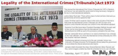 The purpose was not to challenge the right of Bangladesh to try the perpetrators of these crimes, but to ensure that no objection to the proceedings would be likely to arise on the grounds that the 1973 Act was not in conformity with developments in the legal standards developed over the last 37 years.