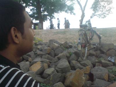 আমার বন্ধু তার প্রিয় সাইকেলটি পাহারা দিচ্ছে; আর আমরা ঘুরছি।