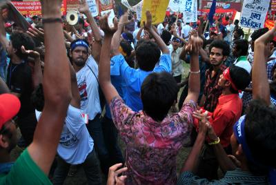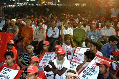 (৩০ অক্টোবর,সন্ধ্যা ৬টা ৩০)- লংমার্চ এখন নেত্রকোণায়। দুপুরবেলা শ্যামগঞ্জে মিছিল এবং সমাবেশ শেষে বিকালে এখানে পৌছেছে লংমামার্চ। নেত্রকোণা শহীদ মিনারে এখন সমাবেশ হচ্ছে। সমাবেশে মানুষের ঢল দেখে মনে হচ্ছে ফুলবাড়ির মতো এখানকার জনতাও সচেতন হচ্ছে নিজেদের সম্পদের অধিকার নিয়ে।