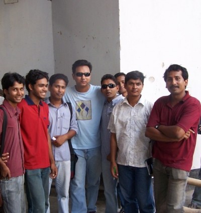 রাজশাহী বিশ্ববিদ্যালয়ে সাংবাদিকদের সঙ্গে আমি। বাঁ থেকে দ্্বিতীয়।