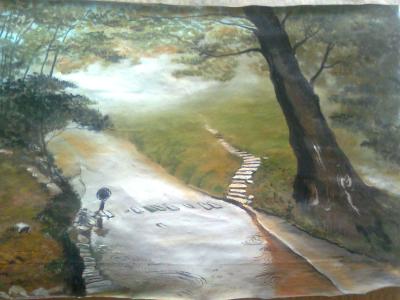 ইদানিং খুব বৃষ্টির সিরিজ আকতে ইচ্ছে করছে।মনে হচ্ছে পিচঢালা রাস্তায় বৃষ্টির ছবি আকি এই ছবিটার মত