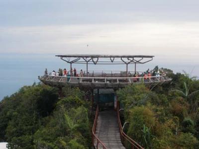 আমিও ভিডিও করা ধরলাম ছবি তুললাম। দুরবীন দিয়ে দএখলাম নীচে।কত উপরে আছি আমরা!!!!সেখানেই স্কাই ব্রীজ।একটা ঝুল্নত ব্রিজ।বাতসে দোলে ব্রিজটা।ভাগ্যিস সেটা বৃেস্টির জন্য বনধ ছিলো।বেচে গেছি।কিনতু আবার আরেকটা স্টেশন তাও কত দুড়ে!!!!!!ইচ্ছা করছিলো ফিরে যাই।চড়লাম তো আর কত। কিনতউ যেতে তো হবেই।দএখি কত পিচ্চি কাচচা গিয়েছে ওদেরকে দেখে সাহস সন্চয়ের চেস্ঠা নিলাম।ফি আমানিল্লাহ বলে দিলাম রওনা। একতু পরেই সবচেয়ে উচু পাহাড়ে পৌছে গেলাম।এখান থেকে পুরো লানকাউই দেখা যায়।