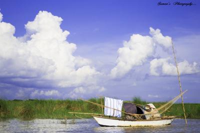 মাছ ধরতে ধরতে ক্লান্ত মাঝিরা এভাবেই বিশ্রামের আয়োজন করে। পদ্মায় তোলা।