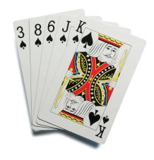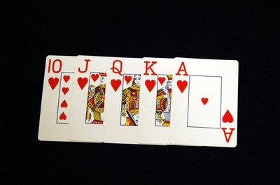 সবচেয়ে বড় হলো রয়াল ফ্ল্যাশ - যেকোন একপ্রকার কার্ডের, অবশ্যই এক প্রকার(যেমন হরতনের) AKQJ10