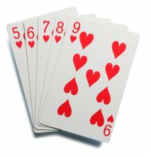 এখন আসবে Straight - যেকোন প্রকারের / কালারের পাঁচটি কার্ড যদি একের পর এক থাকে, যেমন : AKQJ10/ A2345