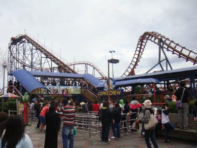 এরপর গেলাম “"Cork Screw"” রাইডে। এটা মূলতঃ একটা রোলার কোস্টার যাতে ২ টি ৩৬০ ডিগ্রী টার্ণ আছে। এই রাইডটিরও একটি সুন্দর দিক হল, এটা যখন আপনাকে প্রথম উপরে ওঠাবে, যেহেতু ট্র্যাকটি একেবারে পাহাড় চূড়ার ধার ঘেষে তৈরী তাই আশ পাশের পাহাড়ের খুব সুন্দর একটা ভিউ পাওয়া যায়। আর ওই সুন্দর দৃশ্য অবলোকন করার পরই শুরু হবে দেড় মিনিটের এক তান্ডব ! সত্যিই খুব মজার!