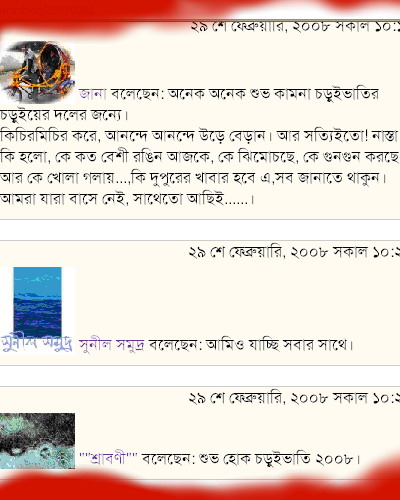 দেখলাম- মন্তব্যটি যথাযথভাবেই সেন্ড হয়েছে ব্লগে। আমাদের পিকনিক বাসের ল্যাপটপে উকি মেরে দেখলাম- নোকিয়া ৩১১০ মোবাইল থেকে পাঠানো মন্তব্যটি শোভা পাচ্ছে সারিয়ার লেখার নীচের অজস্র মন্তব্যের ভীড়ে...।