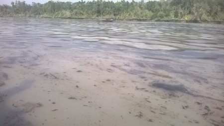 কথায় আছে পানি আর তেল কখনও একসাথে মিশে না। গত ৯ তারিখে ডুবে যাওয়া ফার্নেস তেল বাহী অয়েল ট্যাংকার এ থাকা ৩,৫০০০০ লিটার ফার্নেস তেল এখন ভাসছে শেলা নদীর পানিতে। কয়েক মিলিমিটার পুরু এই ফার্নেস অয়েল এর আস্তরণ জোয়ার ভাঁটার টানে ছড়িয়ে পড়ছে আরও দুরদুরান্তে। আমরা ওখানে যেয়ে যতদূর জানতে পেরেছি এই তেল এখন মানিকতলা পয়েন্ট থেকে জয়মনি ঠোডা পর্যন্ত প্রায় ১৫ কিমি. জায়গা জুড়ে ছড়িয়ে পড়েছে।