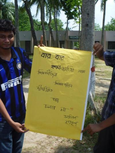 পোষ্টার বিতরন করা ছেলেটা কার সাথে কথা বলছে?(লাইনের শেষের দিকে লক্ষ্য করুন)