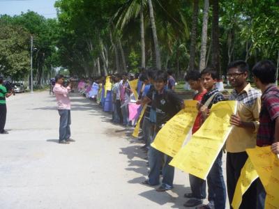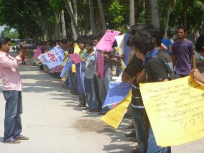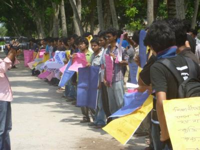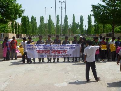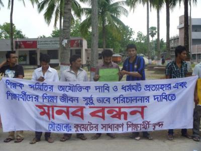 প্রথমে সাধারন ছাত্রদের মানব বন্ধন ...............।।