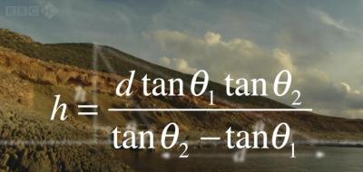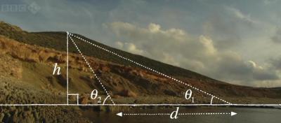 এরপর তিনি একটি পাহাড় খুঁজে বের করলেন যার পাদদেশ সমতল। এবার, ঐ অ্যাষ্ট্রল্যাবের সাহায্যে পাহাড়ের পাদদেশের দুইটি সরলরৈখিক বিন্দু হতে পাহাড়ের শীর্ষের উন্নতি কোণ নির্ণয় করলেন। ফলে সহজেই নির্ণীত হলো পাহাড়ের উচ্চতা , h।