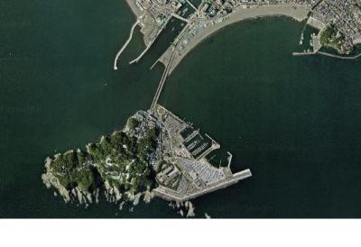 লাইটহাউজের চান্দি থেকে তোলা দ্বীপে ঢোকার পথের ছবি