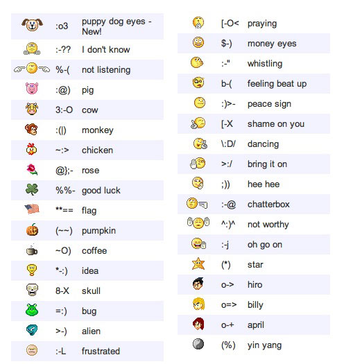 ইয়াহু মেসেঞ্জারে কিছু হিডেন ইমোটিকন আছে। নিচে সেগুলোকে দিলাম।