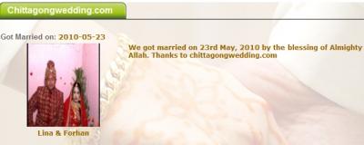 তারা বলছে ২৩ মে ২০১০ সালে তারা বিয়ে করেছে এবং chittagongwedding.com কে সেজন্য ধন্যবাদ দিচ্ছে।