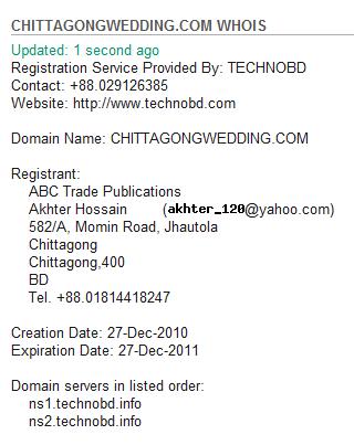 আমি ভাবলাম chittagongwedding.com ডোমেনইটা রেজিস্ট্রেশন করেছে কত সালে একটু দেখি।
