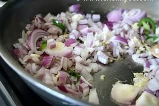 ১। প্রথমে একটা কড়াইয়ে বা প্যান এ ২ টেবিল চামচ তেল গরম করতে দিয়ে তাতে ১ টেবিল চামচ জিরা ছেড়ে দিন,এরপর এতে একটা বড় পেয়াজ কুচি, ১ টেবিল চামচ রসুন এবং আদা কুচি আর অল্প লবন দিয়ে নাড়া চাড়া করুন।