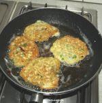৪।আবার কড়াইয়ে তেল গরম হতে দিন। একটা বড় সাইজের চামচে করে তৈ্রিকৃ্ত মিশ্রণটি নিয়ে তেলের উপর ছেড়ে দিন ছোট ছোট ওমলেট এর মত করে।এমন ভাবে ছাড়ুন যাতে ওমলেট গুলো বড় হবার যথেষ্ট জায়গা পায়