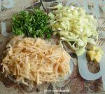 ১। প্রথমে আলু ছিলে গ্রেট করে নিন, ধনে পাতা,পেয়াজ আর রসুন ও কুচি করে নিন।