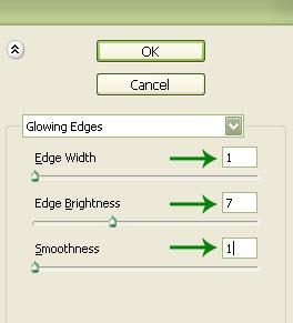 এবার Filter>Stylize>Glowing Edges এ গিয়ে নিচের সেটিংস গুলো দিয়ে ok করুন।