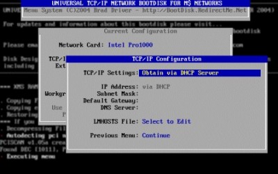 The Universal TCP/IP Network Boot Disk is a DOS bootdisk that provides TCP/IP networking support. It's designed for use in Microsoft networking environments, on either peer-to-peer or domain based LANs. Currently 86 different network card drivers all included, all on the single 1.44MB disk!
