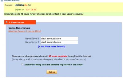http://www.co.cc তে গিয়ে আপনার এ্যাকাউন্টে লগইন করে 'সেটআপ' এ যান। Name Server 1 ও Name Server 2 তে পর্যায়ক্রমে