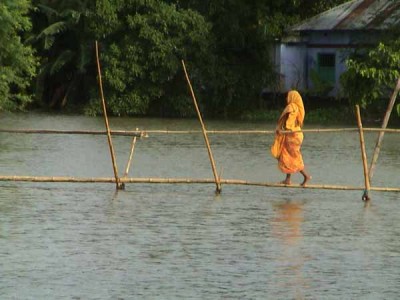 দুজন মাঝি আর বাবার জামা কাপড় কিছুই শুকনো ছিলনা, পিসি তোয়ালে বের করে দিল বাবাকে, বাবা বলল, আগে নামি তারপর । হাঁটুজলে নেমে বাবা একে একে আমাকে আর দাদাকে কোলে করে নামাল । পিসি নিজেই নামল কাপড় ভিজিয়ে ।