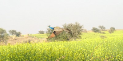 হরিয়ানার এক সর্ষেক্ষেতের উপর উড়ন্ত ময়ূর।