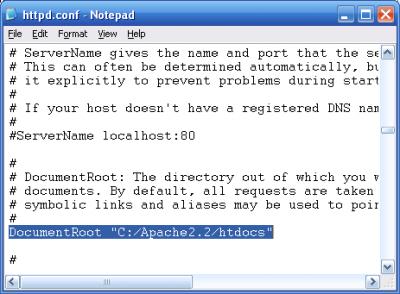 ওয়েব সার্ভার সেটাপ সম্পন্ন হওয়ার পর তাতে তোমার সাইট রাখার জন্য যে ফোল্ডারটি ব্যবহৃত হয় তাকে বলে DocumentRoot বলা হয়। তুমি যদি C:/Apache2.2 এ তোমার সার্ভার সেটাপ করে থাকো তা হলে তোমার DocumentRoot হবে C:/Apache2.2/htdocs লোকেশনে। তুমি চাইলে httpd.conf ফাইল থেকে পরিবর্তন করে যেকোন ড্রাইভ বা লোকেশনে এই DocumentRoot রাখতে পারো। এরজন্য স্টার্ট মেনুতে গিয়ে "Apache HTTP Server 2.2 > Configure Apache Server > httpd.conf" খুলে DocumentRoot খুঁজে বের করো পরিবর্তন করে নিতে পারো।