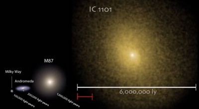 যদি আমাদের ছায়াথের এই অতিকায় দৈত্যটির জায়গা নিতে হয় তাহলে এর আকার ধারন করতেই ছায়াপথগুলির বিলিয়ন বছর অতিক্রান্ত হয়ে যাবে।এই ছায়াপথটি একটি দৈত্যকার উপবৃত্তাকার ছায়াপথ।এই ছায়াপথের ভিতরে ধাতু সমৃদ্ধ নক্ষত্র আছে,এর মধ্যে কিছু নক্ষত্রের বয়স আমাদের সূর্যের চেয়ে ৭ বিলিয়ন বছর বেশী,ছায়াপথটির রং সোনালী হলুদ।দূরবীনের পর্বেক্ষনে এই ছায়াপথটির নক্ষত্র সর্ম্পকে একটি কৌতুহলী তথ্য পাওয়া গিয়েছে।সাধারনত নীল রংয়ের একটু আভা ছায়াপথটির সক্রিয় নক্ষত্র গঠনের সংকেত দেয়।আর হলুদ –লাল রংগুলোর সূচনা একটি নতুন নক্ষত্র জম্নের মধ্যে দিয়ে শেষ হয়। IC-1101 খুব অল্প সংখ্যক নতুন নক্ষত্রের জম্ন দিচ্ছে।