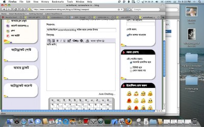 আমি জানি অনেক ম্যাক ব্যবহারকারী somewhereinblog ব্যবহার করতে পারছেন না। যদিও ekushey.org-এ ম্যাকের জন্য বাংলা কিবোর্ড ও বাংলা ফন্ট পাওয়া যাচ্ছে। অনেকেই হয়তো ভাবছেন ম্যাকে হয়তো বাংলা ঠিক মতো কাজ করে না বা, somewhereinblog হয়তো ম্যাক support করে না।