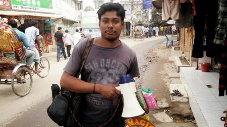 প্রতিদিন লাভ হয় তিন/চার শত টাকা, ইচ্ছা মতন নানা এলাকায় ঘুরে বেড়ান! হাতের হ্যান্ড মাইকের কথা জিজ্ঞেস করতেই বললেন এক বড় ভাইকে বছর তিনেক আগে এটা সাড়ে সাত শত টাকায় সদরঘাট থেকে কিনে দিয়েছেন। এটা ব্যাটারী চালিত, কাঁধে ঝুলানো ব্যাগের মধ্য মালামালের সাথে এই ব্যাটারী থাকে।
