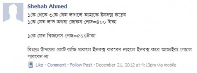 মহানবীর (স) এর রওজার ছবিতে লাইক না দিলে নাকি আপনি কাফির হয়ে যাবেন, কিংবা শেয়ার না করলে আপনি মুসলিম থাকবেন না, কিংবা কোন ছোট বাচ্চা নামাজ পড়তেছে সেটা দেখিয়ে, কিংবা অশ্লীল জোক্স পোস্ট করে যে যেভাবে পারে লাইক আদায় করছে।