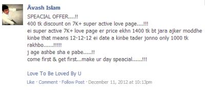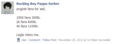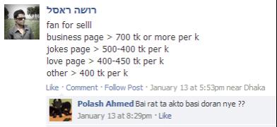 কাবা ঘরের জন্য কয়টি লাইক, কিংবা যারা মা কে ভালবাসেন তারা লাইক দিন ইত্যাদি কথায় ধর্মীয় জোশে কিংবা ইমোশনাল হয়ে আপনি যেই লাইক দিচ্ছেন, সেগুলো বিক্রি করা হচ্ছে দেদারসে। আপনিই পণ্য। প্রকার ভেদে প্রতি ১০০০ লাইক বিক্রি হয় ৩০০ থেকে ৬০০ টাকা পর্যন্ত।
