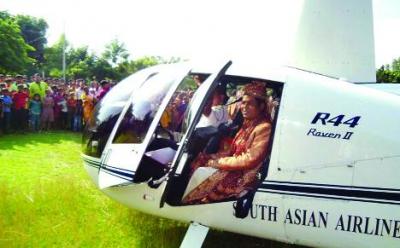 আজ শুক্রবার বিকেল চারটার দিকে বর-কনে হেলিকপ্টারে করে ঢাকা থেকে নীলফামারী হাইস্কুল মাঠে নামেন।তারপর ওঠেন ঘোড়ার গাড়ি টমটমে।বাদ্যযন্ত্রের তালে তালে সেই টমটম শহর ঘুরে বড় বাজার এলাকায় বরের বাড়ি পৌঁছে।