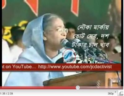 ভিডিওটির শব্দে কিছুটা অস্পষ্টতা আছে, তবে কম ভলিয়্যুমে কয়েকবার শুনলেই স্পষ্ট হয়ে ওঠে শেখ হাসিনার বক্তব্য বিগত চারদলীয় জোট সরকারের ক্ষমতা হস্তান্তরের পরের কোন সময়ের। তিনি প্রতিশ্রুতি দিচ্ছেন, ” … বিদ্যুতের সমস্যা, আওয়ামী লীগের আমলে বিদ্যুৎ বানিয়েছিলাম, ইনশাআল্লাহ আবার যদি আসতে পারি, বিদ্যুতের উৎপাদন আমরা বাড়াতে পারবো। রাস্তা-ঘাট, পুল, ব্রিজ, স্কুল-কলেজ, মসজিদ-মাদরাসা, যেভাবে উন্নয়ন করেছিলাম, ঐ বক্তৃতার উন্নয়ন না, সত্যিকারভাবে মানুষ যাতে সুফল পায় সে উন্নয়ন আমরা করবো। ……. আমার ভোট আমি দেব, যাকে খুশি তাকে দেব। বিশ টাকা চাল খাব না, ধানের শীষে ভোট দেব না। নৌকা মার্কায় ভোট দেব দশ টাকায় চাল খাব।”