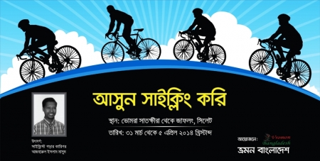 সাইকেল আমাদের জীবনের একটি গুরুত্বপূর্ন অংশ হয়ে দাড়িয়েছে । সাইকেল চালানোর উপকারী দিক সম্পর্কে আরো বেশি সচেতনতা তৈরির লক্ষ্যে ”ভ্রমণ বাংলাদেশ” আয়োজন করেছিলাম “সাতক্ষীরা জেলার ভোমরা বর্ডার থেকে সিলেটের জাফলং” পর্যন্ত সাইক্লিং ।