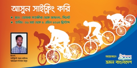 সাইকেল আমাদের জীবনের একটি গুরুত্বপূর্ন অংশ হয়ে দাড়িয়েছে । সাইকেল চালানোর উপকারী দিক সম্পর্কে আরো বেশি সচেতনতা তৈরির লক্ষ্যে ”ভ্রমণ বাংলাদেশ” আয়োজন করেছিলাম “সাতক্ষীরা জেলার ভোমরা বর্ডার থেকে সিলেটের জাফলং” পর্যন্ত সাইক্লিং ।