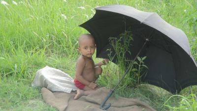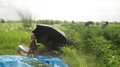 রাস্তায় যেতে যেতে দেখলাম। একটি ফসলি জমিতে এক কৃষক পরিবার তাদের ছোট একটি মেয়েকে ছাতার নিচে বসিয়ে রেখে তারা মরিচ তুলতে ব্যস্ত।