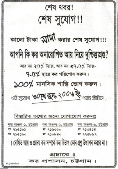 বিজ্ঞপ্তিটি চট্টগ্রাম থেকে প্রকাশিত 23 শে জুন 2006 এর দৈনিক আজাদী তে প্রথম পৃষ্ঠায় প্রকাশিত।