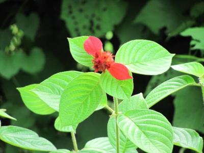 সবুজ সবুজ আর সবুজের মাঝে অদ্ভূতভাবে ফুটে আছে নাম না জানা লাল ফুলটা। বড় লাল পাপড়ি দুটো দেখতে ঠিক পাতার মতোই। পায়ে পায়ে সম্মোহিত আমি আরো কাছে এগিয়ে গেলাম।