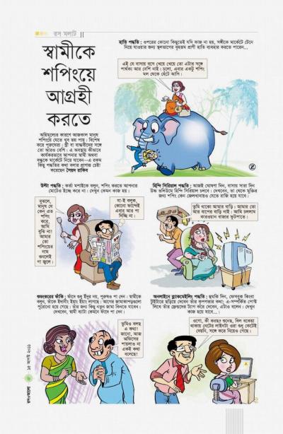 নারীমুক্তি আন্দোলনের এক নতুন দিগন্ত, আর নয় বাড়ির কোনে বসে থেকে কমদামে টেইলার্স থেকে জামা কাপড় বানিয়ে আনা... এই অগ্নিমুল্যের বাজারে আপনার স্বামীকে/বয়ফ্রেন্ড কে শপিং এ টেনে নিয়ে যাওয়ার অব্যর্থ কিছু উপায় আজকের রস+আলো তে...১৭৫ তম সংখ্যা পৃষ্টা -৬, ১৫/০৮/২০১১ তে প্রকাশিত
