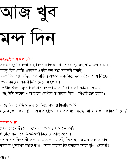 আজ খুব মন্দ দিন