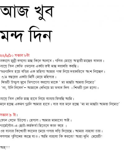 সকালে মুন্নী বললো মাছ কিনে আনতে। গলির মোড়ে অস্থায়ী মাছের বাজার।