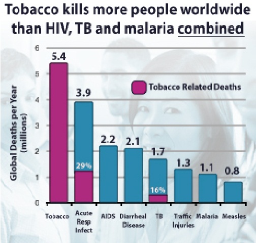 * বিশ্বে প্রায় ১.১ বিলিয়ন ধূমপায়ী। যদি বর্তমান এই প্রবণতা বজায় থাকে তবে ২০২৫ এর মধ্যে এর সংখ্যা ১.৬ বিলিয়নে পৌঁছে যাবে।