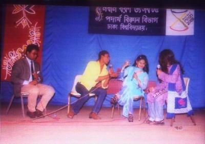 কবি ঃ মানে আমি দেখলাম, নিউটন আর আইনস্টাইনের পরে বিজ্ঞান তো থেমে আছে। আর সাহিত্য নিয়ে অনেকেই অনেক কিছু করছে। তাই ভাবলাম বিজ্ঞান আর সাহিত্যের এক অপূর্ব সংমিশ্রণ বিহিত্য বানানো যায় কিনা!