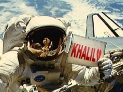 নেইল আরমস্ট্রং আসতে আসতে স্পেশশীপ থেকে নামছেন। কলিন্স লুনার থেকে সব কিছু খেয়াল করছেন। নেইল আরমস্ট্রং পা রাখলেন। তারপর বললেন, "That's one small step for man, one giant leap for mankind"। তারপর তিনি থতমত খেয়ে গেলেন। চাঁদের বুকে কে জানি লিখে রেখেছে, “ This is a good place. There is no girl here- Khalil”