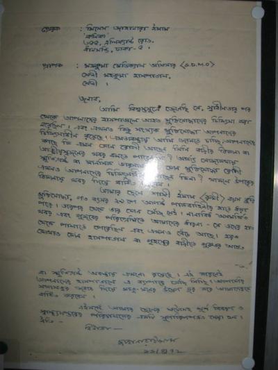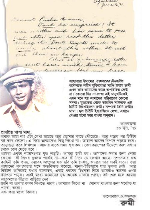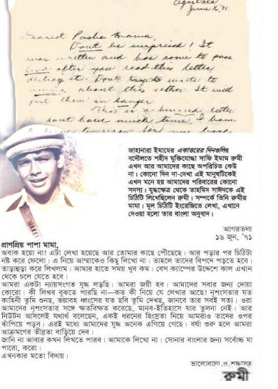 (মুক্তিযুদ্ধের সময় রুমির লেখা চিঠি। তবে মুল চিঠিটি ইংরেজিতে ছিল)
