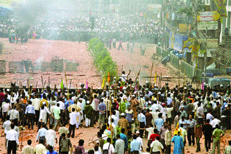চারপাশে কতগুলো খাঁচা নিয়ে মহিলা বসে আছেন উত্সুকচিত্তে । খাঁচাগুলো থরে থরে সাজানো অনেকটা ঘাসের মতন । চারপাশে এত চিত্কার আকাশ চোখেই পড়ে না ।