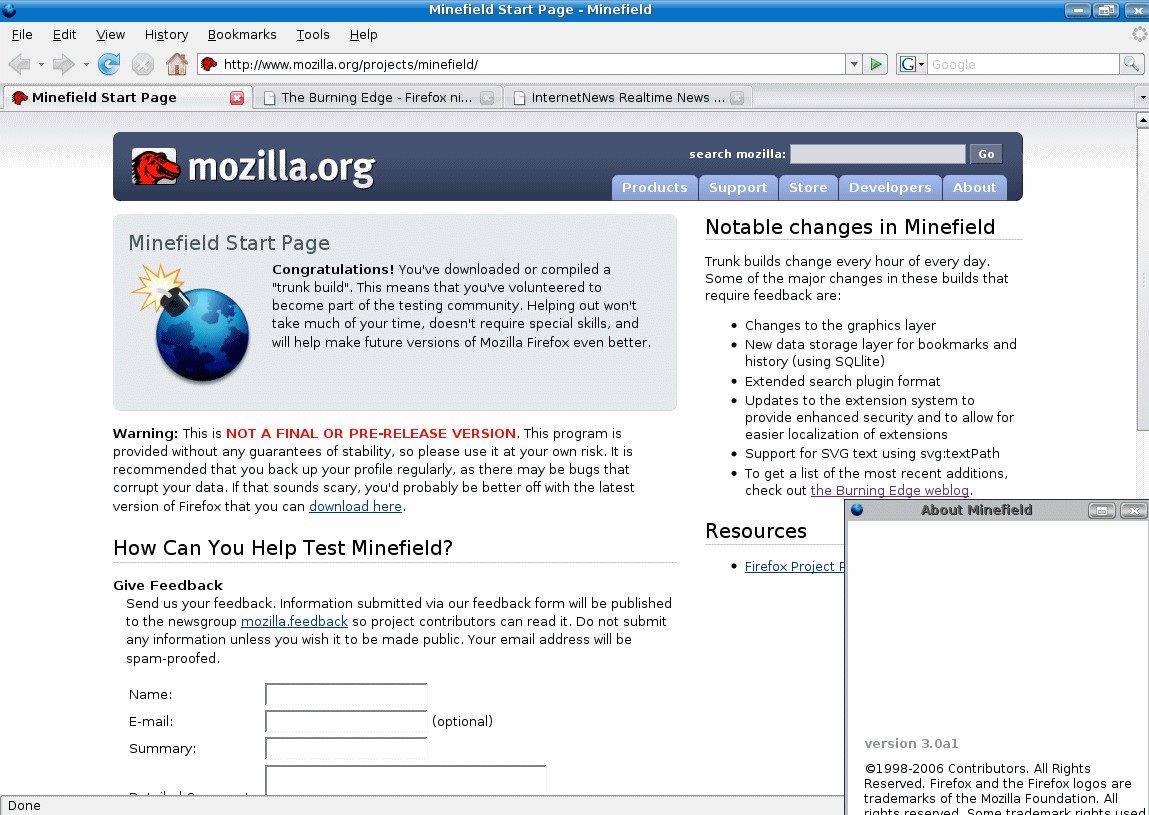 Firefox 3.0 is currently being developed under the code name Gran Paradiso and the current alpha release is code-named Minefield.